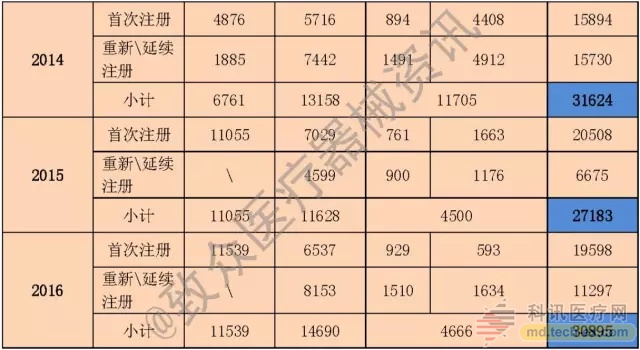 2017年5月23日,国家食品药品监督管理总局发布了2016年度食品药品监管统计年报,小编的朋友圈已被“全国增加十几万家医疗器械经营企业”这一信息点刷爆。但除了企业数量,这几年的医疗器械注册数量也不由得引人关注。小编将总局从第一期到最新一期的监管统计年报中的医疗器械注册数据做了统计分析,从注册量来看医械圈这几年的风云变化: