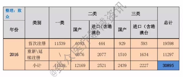 根据2016年统计年报的数据,全国共批准境内第一类医疗器械备案11539件,进口第一类医疗器械备案3023件;境内第二类注册医疗器械6093件,境内第三类注册医疗器械929件,进口第二类注册医疗器械(含港澳台)444件,进口第三类注册医疗器械(含港澳台)593件。批准境内第二类延续注册医疗器械6076件,境内第三类延续注册医疗器械1510件,进口第二类延续注册医疗器械(含港澳台)2077件,进口第三类延续注册医疗器械(含港澳台)1634件。境内第二类许可事项变更医疗器械3814件,境内第三类和进口(含港澳台)许可事项变更医疗器械1466件。(见表一)